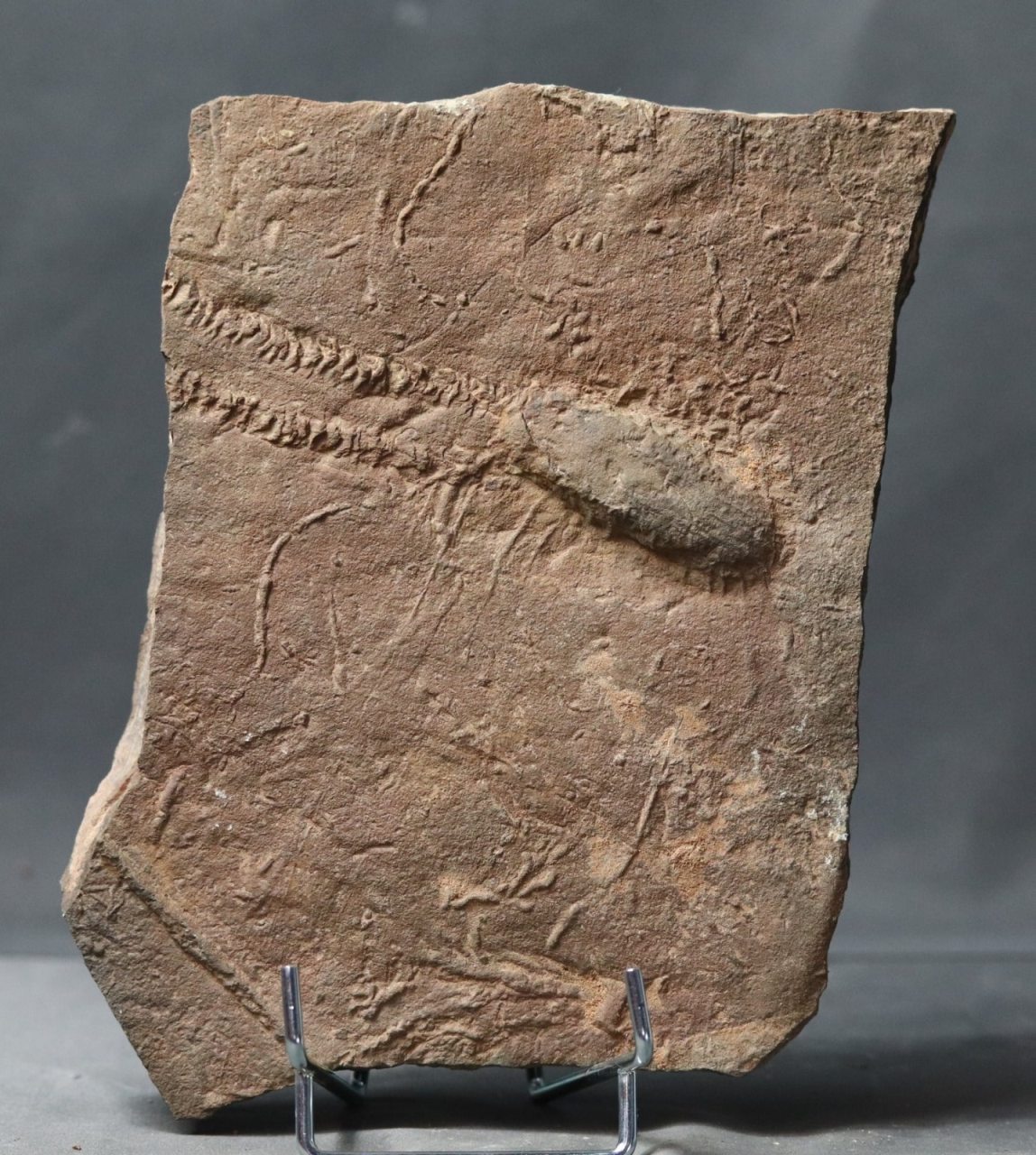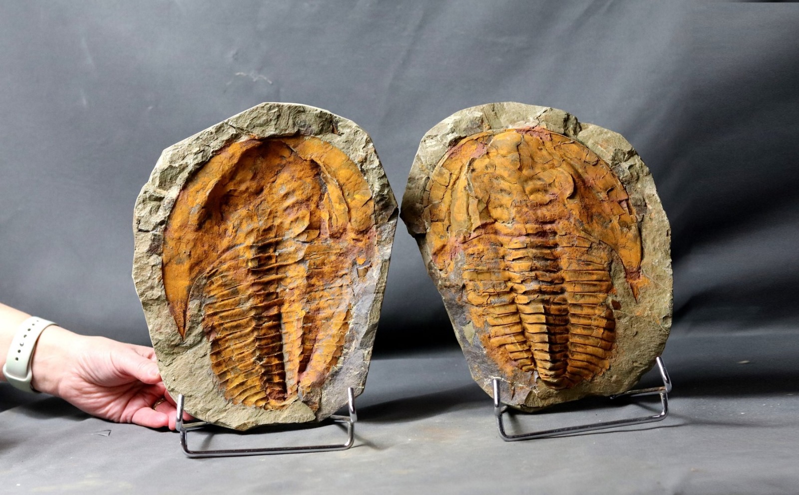 De nombreux Trilobites sont fossilisés en position ventrale, ce qui permet une excellente observation de leur anatomie. Les Triarthrus eatoni ont une taille très modeste d'environ 2 centimètres même si certains atteignaient jusqu'à 5 centimètres, et la préparation de ces spécimens très fragiles est un travail délicat.