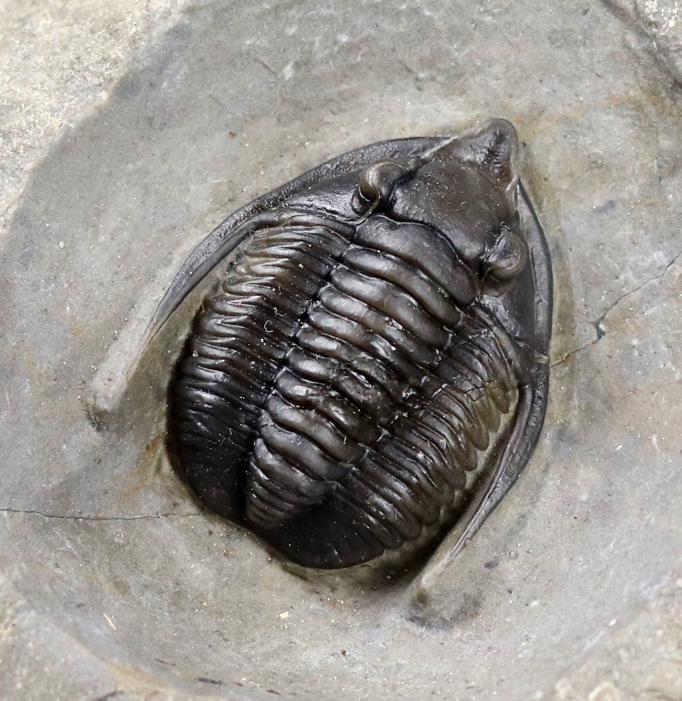Beaucoup de Trilobites avaient la possibilité de s'enrouler sur eux-mêmes en cas de danger pour protéger leur abdomen. C'est pour cette raison que l'on retrouve des spécimens fossilisés dans cette position.