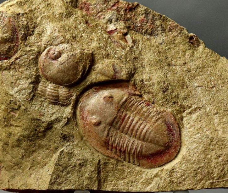 Les Trilobites possédaient un exosquelette très solide qu'ils quittaient régulièrement pour muer. Celui-ci se séparait entre le céphalon et le thorax, c'est pourquoi il est fréquent de trouver des fossiles de ces exosquelettes composé seulement de l'une ou l'autre partie. Les fossiles complets de Trilobites morts sont donc moins fréquents.